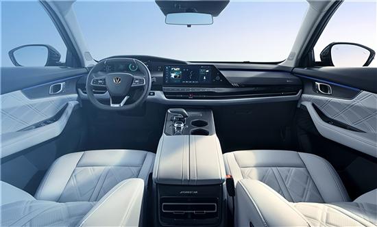 内饰方面,中控台采用T字型布局,配备了平底式多功能方向盘、10.25英寸全液晶仪表和14.6英寸悬浮式中控屏,营造出极强的科技感。此外新车座椅可放倒形成纯平的空间,纵深可以达到1920mm。该车后备厢容量为1496L,内部还增加了多锚点,展现出强大的拓展能力。