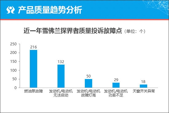 作为上汽通用雪佛兰品牌旗下的全新SUV,雪佛兰探界者Plus是否会有发生质量问题的隐患?对此,我们将从过去一年雪佛兰探界者车型的故障问题入手,通过故障问题比对,从而初步预测未来新车质量问题的发展趋势。由于雪佛兰探界者Plus是雪佛兰探界者的换代车型,可作为参考。