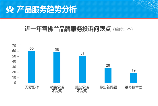 从服务投诉问题点来看,“无零配件”和“销售承诺不兑现”成为车主对于上汽通用雪佛兰品牌抱怨相对较多的服务问题。通过进一步分析可知,这类服务问题来自于雪佛兰探界者以及雪佛兰迈锐宝XL等车型。