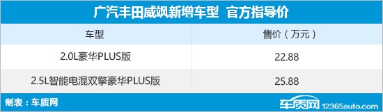 6月6日,广汽丰田威飒新增车型正式上市。新车共推出两个版本,分别为2.0L豪华PLUS版和2.5L智能电混双擎豪华PLUS版,售价分别为22.88万和25.88万元。此外,官方还推出了6月购车权益,威飒全系车型可享2万元回馈礼以及5000元见面礼。