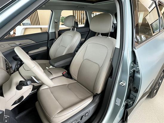 EV5 720长续航版2750mm的轴距是标准的紧凑型SUV身材,但其内部空间做到了最大化进到车内感到非常开阔且松快。前排座椅创意性的连在了一起,官方称其为“浪漫座椅”,是为了取消传统座椅前排的隔阂,从实际效果来看最大作用是让副驾的横向空间变多了一些,人能坐得更加舒展。