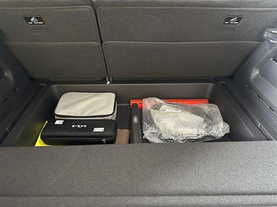 隔板下方依旧能放下常用的物品,书包、储物也不在话下,EV5空间利用率做到了极致,点赞。