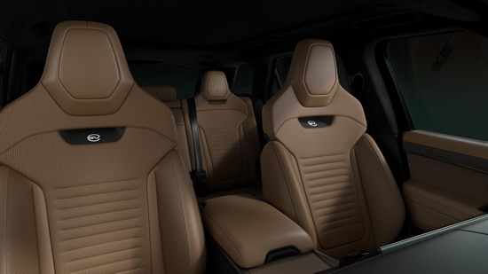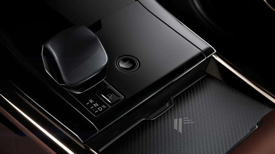 Theia(提亚、忒亚,是古希腊众光明神之母)车型采用缎灰色金属漆,配备23英寸金色轮圈和黑色制动卡钳。车内使用了米色或甜椒红色温莎皮革,搭配亮黑色饰条,中控台区域还加入了碳纤维装饰。