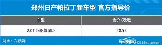 7月3日,车质网从相关媒体获悉,郑州日产帕拉丁四驱尊途版车型正式上市,售价20.58万元。作为新增车型,其主要针对配置方面进行了调整,动力方面搭载2.0T汽油发动机。