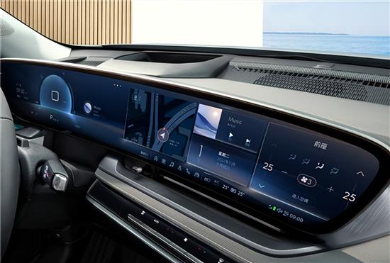 内饰设计采用了时下纯电动车惯用的极简风格,车内仅配备了少量物理按键,大部分功能操作与显示都集成在8.8英寸液晶仪表和15.6英寸多媒体中控屏幕中。此外,新车还搭载了SOA智能座舱,内置高通骁龙8155车机芯片,开放38个服务模块,拥有123个接口,支持300+自定义场景。