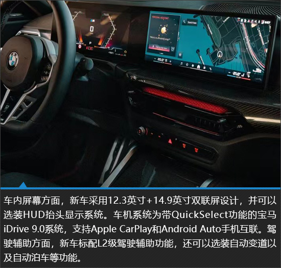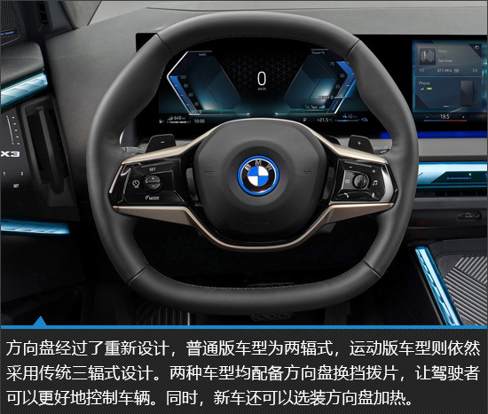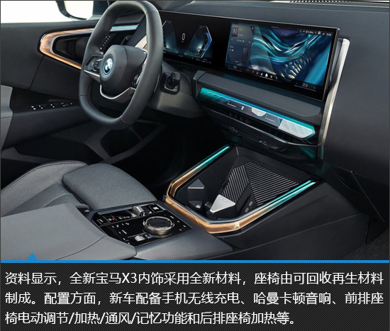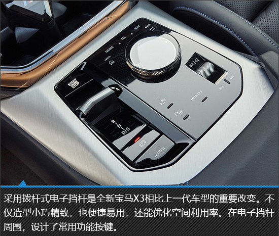 相比上一代车型,全新宝马X3的内饰科技感有明显提升,双联屏设计更是很多年轻消费者喜欢的,宝马iDrive 9.0系统在使用体验方面也可以让人满意。当然,新车在内饰方面也存在一定的争议,如将标志性的“鸡腿”造型电子挡杆换成了拨杆式电子挡杆和此前很少在宝马品牌车型上出现的两辐式方向盘。