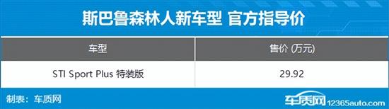 7月15日,斯巴鲁森林人STI Sport Plus特装车正式上市,新车推出1款车型,售价29.92万元。作为新增车型,其主要在外观套件上进行了升级,带来不同的视觉感受,并提升一定的性能效果。