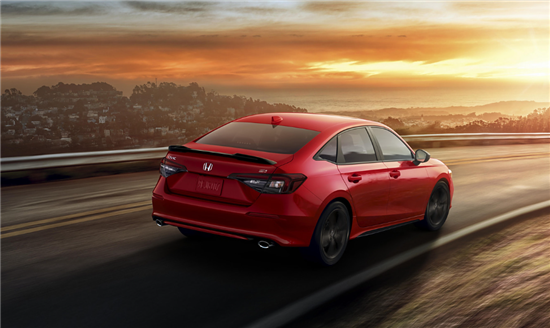 侧面的造型与现款车型保持一致,其配备了Si车型专属的18英寸熏黑轮圈,整体样式也较为运动,同时消费者还可增加300美元,选装更高性能的轮胎。尾部的变化不大,其配备了黑色扰流板,尾灯也进行了熏黑处理统一了视觉效果,搭配双边共两出的排气布局,性能感营造较为明显。