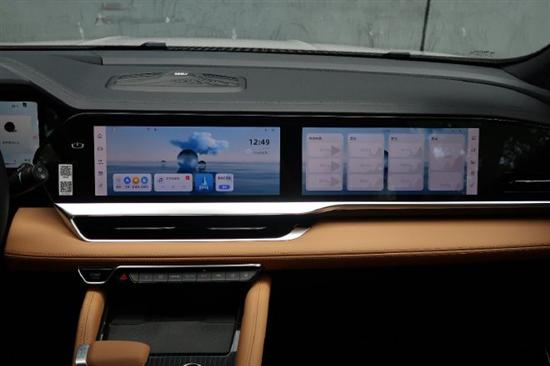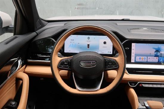 打开车门,星越L智擎 星云版车内的三块仍是最能吸引眼球的地方,12.3英寸IMAX三联屏也是星越L智擎全系车型的标配,三块屏幕分别为多功能液晶仪表屏幕、中控高清触控大屏幕、副驾专属触控大屏幕。三块不同功能的屏幕不仅可以向车内乘客展示更多的信息,同时也可以将不同功能进行分类,避免高度集成从而影响了许多功能信息的展示,更能减小多媒体娱乐系统对驾驶员的影响。能够全面支持三块联屏协同工作的是银河OS 2.0 智能车机系统,车机系统使用的是来自高通骁龙的8155芯片,为车辆所有智能系统的高速工作进行了最优质的保障。