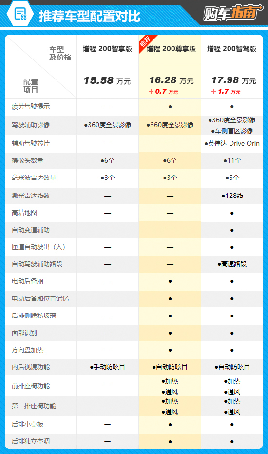 综上所述,售价16.28万元的增程 200尊享版性价比最高,消费者在选购时可以优先考虑。