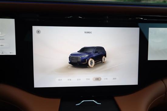 通过屏幕我们也是可以对车辆的驾驶信息以及智驾功能进行设定,该车将支持7种驾驶模式的切换,包括经济、标准、运动、雪地、泥地、沙地以及越野模式,并且我们也是可以通过屏幕来观察车辆四驱能量流的输出情况。