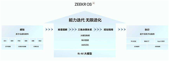 智能座舱方面,新款极氪007首次引入AI超级大脑——Kr AI大模型,基于AI Eva全面进阶的ZEEKR OS,从2025款极氪007开始,升级为ZEEKR AI OS,极氪从此进入主动AI智能时代。