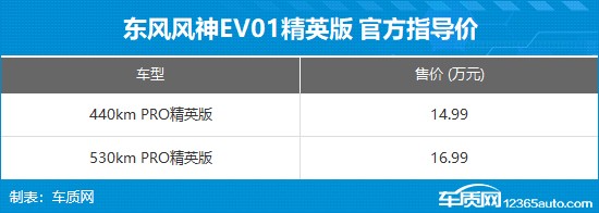8月13日,东风风神旗下SKY EV01车型推出两款全新配置版本,分别为440km PRO精英版和530km PRO精英版,官方指导价分别为14.99万元和16.99万元。新增车型与现款在售车型外观基本保持一致,同时配置有所调整,CLTC纯电续航里程分别为440km和530km。