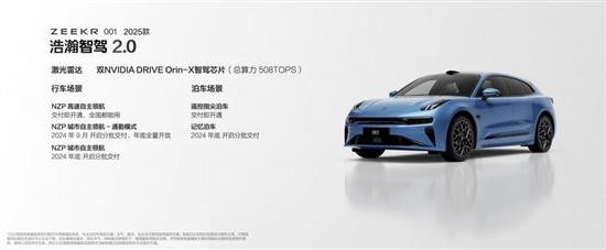 2025款极氪001主要针对智驾方面进行升级,内外设计均与老款车型保持一致。极氪推出了最新的浩瀚智驾2.0版本,硬件上采用超长距激光雷达,拥有200m超长测距、120°超广水平视场角、等效128线的水平。同时,两颗NVIDIA DRIVE Orin智能驾驶系统级芯片上车,采用7nm制程工艺,算力高达508 TOPS。
