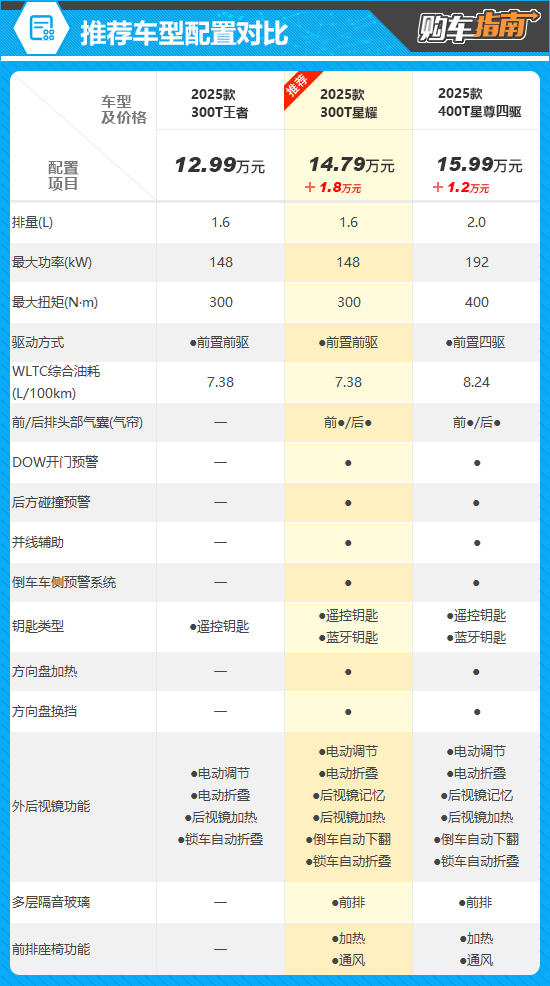 因此综合来看,如果您正在关注2025款星途凌云,那么300T星耀值得您优先考虑。