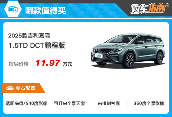 综合来看,如果您正在关注2025款吉利嘉际,那么厂商指导价11.97万元的鹏程版值得优先考虑。