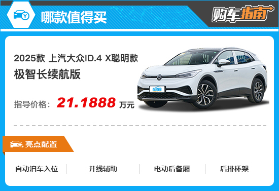 综合来看,对于大众ID.4 X聪明款的购买建议,编辑重点推荐极智长续航版,建议消费者在购买时优先考虑。