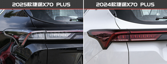 相比车头而言,尾部变化并不多。新款捷途X70 PLUS依旧采用了贯穿式尾灯设计,只是内部灯组颜色相比老款车型有所调整,并进行了熏黑处理,看上去更加年轻时尚。后包围采用了不同寻常的分体式造型,大面积导流设计相比老款的防擦护板显得更加动感。另外,老款车型上双边共四出的排气在新款车型上也变为了单边共两出。