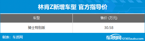9月14日,林肯Z骑士特别版正式上市,新车售价30.58万元。对比现款车型,新车针对外观和内饰增加了特别的装饰,以彰显其个性化的定位。