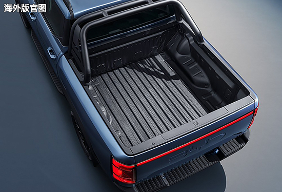 细节部分,包括轮眉、包围、车顶行李架以及龙门架,均采用了黑色材质,具有很强的野性感。竖置尾灯组与前脸相呼应,视觉观感比较一致。车身尺寸方面,新车长宽高分别为5457mm*1971mm*1925mm,轴距为3260mm。根据官方公布的信息来看,新车的接近角和离去角分别为31°和19.3°,满载离地间隙210mm,货箱容积达到1450L。