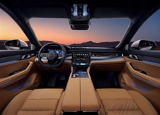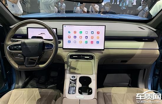 内饰采用极简主义设计风格,得益于贯穿式空调出风口,使得整个中控台的视觉效果更具立体感。新车标配8.8英寸全液晶仪表以及15.6英寸悬浮式中控屏,内置Ling OS系统,支持连续语音识别、可见即可说、语音免唤醒等主流功能。