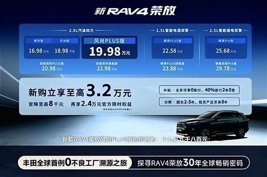 9月12日,一汽丰田官方宣布旗下新RAV4荣放正式上市,新车共推出9款车型,售价区间为16.98-29.78万元。相比老款车型,新RAV4荣放入门车型售价下调7000元,同时外观和内饰细节也有所升级。