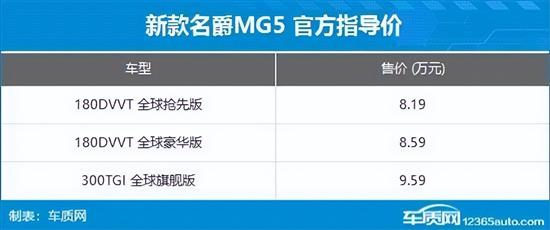 9月13日,全新名爵MG5正式上市,新车共推出3款车型,官方指导售价区间为8.19-9.59万元,优惠价为6.59-7.59万元。作为改款车型,新车将对外观、内饰以及配置进行调整。