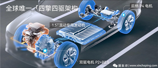 1.5T发动机是混动专用的,馈电油耗6.6L,搭配上34.46kWh的动力电池(CLTC纯电续航195-200km),最高续航可达1400km。