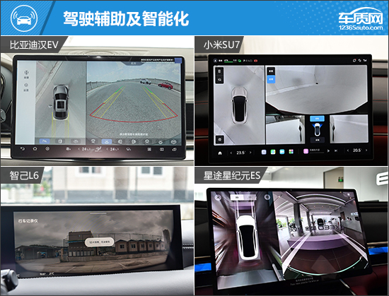 驾驶辅助系统方面,四款车型的辅助驾驶等级均达到了L2级,区别主要体现在了亮点功能上。比如,比亚迪汉EV独享了代客泊车,智己L6则是四款车型中唯一一款标配城市NOA的车型。相比之下,小米SU7在亮点功能上缺失较多,但好在提供了不少选装机会。