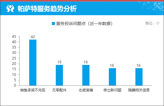 从服务投诉问题点来看,“销售承诺不兑现”成为车主对于帕萨特车系抱怨相对较多的服务问题。