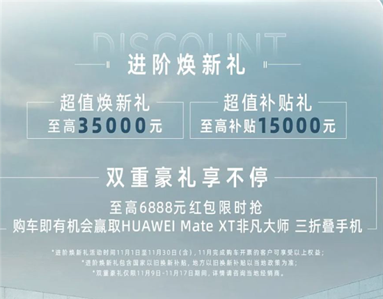 与此同时,官方宣布,购车即可享受至高1.5万元补贴和至高3.5万元置换补贴,补贴权益限时11月1日-11月30日。