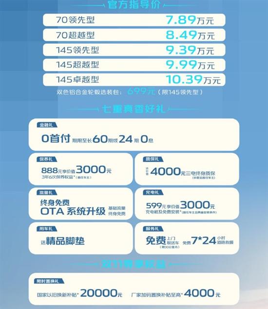 目前该车已上市,共推出5款车型,官方指导价为7.89-10.39万元,并推出多重好礼。