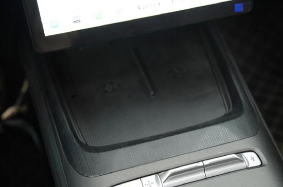 中央扶手区域使用了悬浮式的设计,由于使用了怀挡,所以这个区域的空间就被留了出来。手机无线充电和放置一些小物品都挺顺手的。下方还有一个非常大的储物空间,里面还设计有12V电源和USB充电接口。