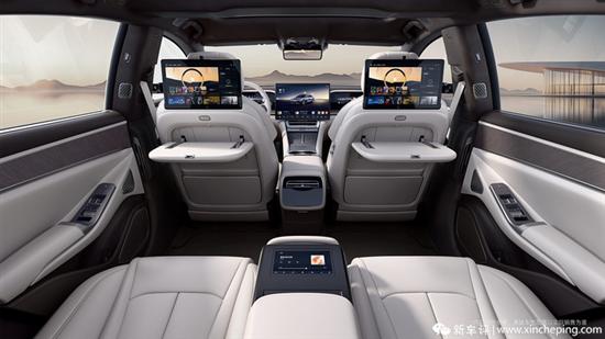 内饰方面,同样也是与腾势Z9GT基本一致,非常注重豪华氛围,配备了悬浮式中控屏、全液晶仪表、全新样式的四幅式方向盘、副驾驶娱乐屏等,不过新车采用的是电子怀挡杆,与腾势Z9GT有所不同。此外,后排方面,该车配备了后排娱乐屏、小桌板以及腿托支撑等,可以看出在乘坐舒适性方面有着更好的表现。
