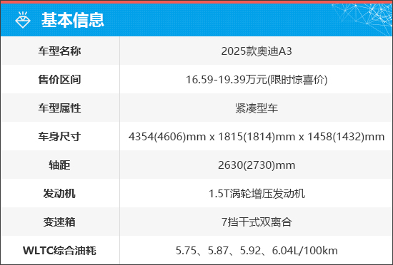 此次新款奥迪A3为中期改款车型,新车依旧推出奥迪A3L Limousine(三厢)和奥迪A3 Sportback(两厢)两种车身结构,限时惊喜价为16.59-19.39万元。