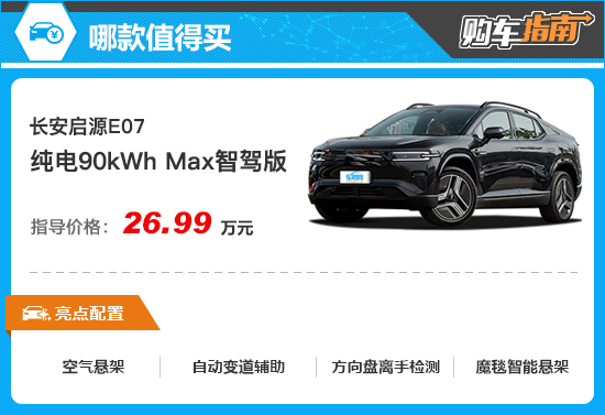 综合来看,如果您正在关注长安启源E07,那么增程39kWh Max智驾版和纯电90kWh Max智驾版在购买时可优先考虑。