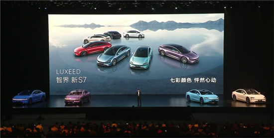 其他方面,智界新S7此次重点在色彩方面进行了升级,一共提供7种车身配色,其中就包括幻影紫、碧波青、暖星云以及问界新M5同款的大都会红,还提供19英寸、20英寸和21英寸三种不同规格的轮毂,分别匹配不同的轮胎。