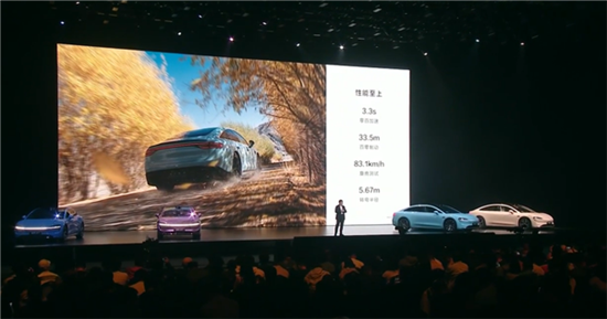 动力部分,该车全系均搭载华为DriveONE动力平台,四驱版零百加速3.3秒,100-0km/h刹停距离33.5米,麋鹿测试通过最高车速83.1km/h,转弯半径仅5.67米。