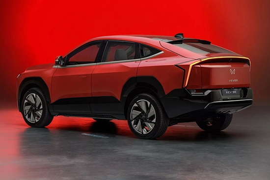 Mahindra XEV 9e外观设计颇为流畅,甚至有些攻击性。其采用了轿跑SUV造型轮廓,整车线条以棱线为主,“N”形的贯穿式LED日间行车灯大幅提升了整体感,与下方的分体式灯组相搭,十分融洽。车尾设计颇为饱满,尾灯组的灯带造型与车头相呼应,形成前后统一。上扬的底部扰流板与下溜的车尾轮廓向中间聚拢,有效提升了视觉重心。