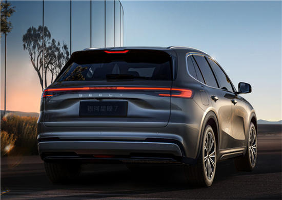 车尾造型与银河E5区别较大,从车顶延伸出两段式小扰流板造型,并配备高位刹车灯,牌照框移至后尾门处,“旭日东升”贯穿式尾灯做到了首尾呼应。