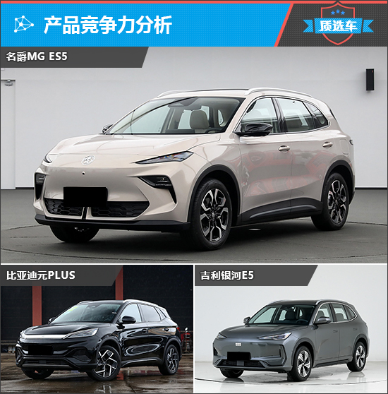 国内纯电动紧凑型SUV市场庞大,车型数量也相当多,综合考虑产品定位、品牌以及价格区间,最终我为名爵MG ES5选择的竞品车型分别为比亚迪元PLUS和吉利银河E5。作为自主品牌中的佼佼者,这两款车型无论是销量表现还是市场口碑都很出色,名爵MG ES5若想取得成功,就势必要在竞争中保持自身优势。