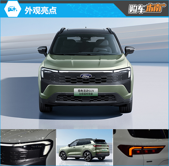 2025款江铃福特领睿插电混动采用了最新的家族式设计理念。前脸有着黑曜石质感的前格栅,与经过黑化处理的前大灯组完美融合,内部辅以蜂窝状中网,展现出独特的视觉魅力。同时,底部进气口同样为黑色蜂窝状设计,进一步强化了运动氛围。