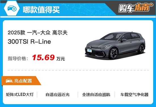 因此对于新款高尔夫的购买建议,重点推荐售价15.69万元的300 TSI R-Line版,建议消费者在购买时可优先考虑。