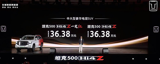 1月1日,坦克500 Hi4-Z正式上市,新车共有2款车型,售价均为36.38万元。此外,官方还推出限时享4000元新车购车红包,1.3万元舒享套餐,至高7000元补贴等活动。新车定位为中大型插电混动SUV,相较现款坦克500 Hi4-T,其拥有更为强劲的动力表现,不仅燃油经济性出色,而且纯电续航里程也更长,能够更好地满足城市用车需求。