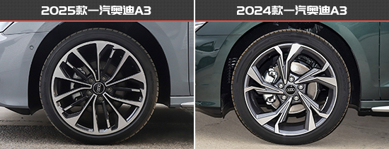 车身侧面基本没有变化,看上去非常简洁、干练。车身尺寸方面,新款一汽奥迪A3(三厢版车型)在车身长度、高度以及轴距三项数据均有所提升,预计车内乘坐空间表现会更加出色。另外,虽然新老款车型均采用相同规格的轮胎,但新款车型取消了非全尺寸备胎,仅提供补胎工具。