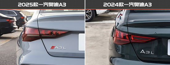 车尾部分,新老款车型仅在细节上有所调整。其中,新款一汽奥迪A3尾灯内部结构发生改变,增强了新车辨识度。同时,底部加装了与车头一样的“L”形镀铬“跃动银羽”,视觉效果更精致。