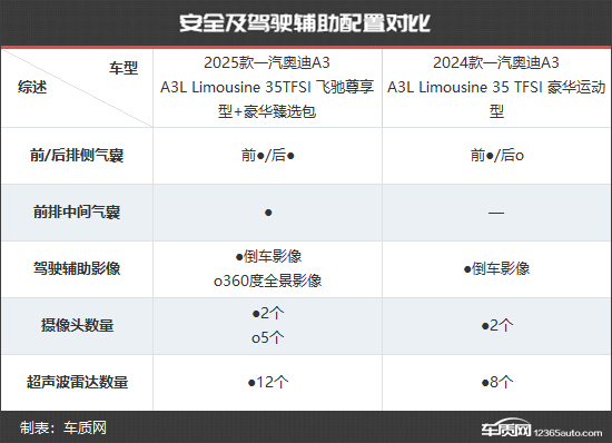 安全配置方面,新款一汽奥迪A3后排侧气囊由老款选装变为标配,并且新增加了前排中间气囊,对驾乘人员保护更加到位。另外,新款一汽奥迪A3还提供了360度全景影像配置的选装,有需要的消费者可自行选购。