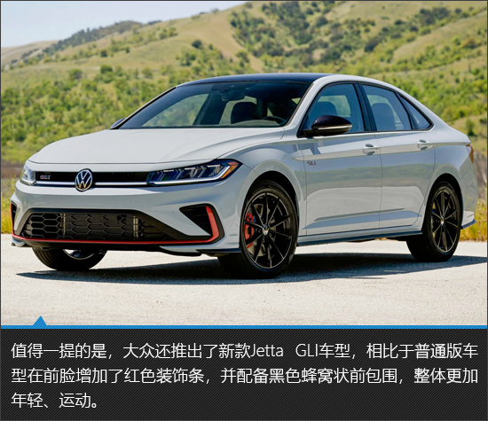 可以看到,为了俘获年轻消费者的心,新款Jetta一改往日稳重、平庸的外观设计,整体风格更加年轻动感。并且大众还带来了更为激进的新款Jetta GLI车型,两种风格能够满足不同消费者的审美需求。