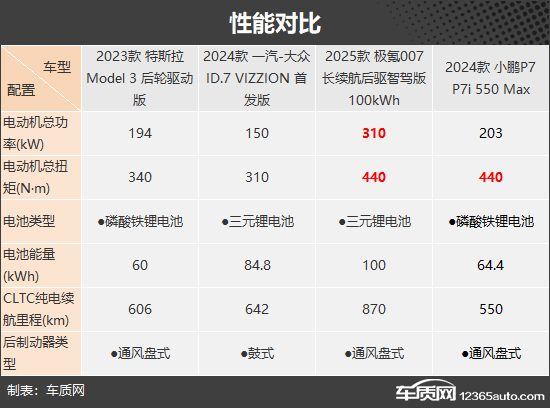 此次我们挑选的车型分别是特斯拉Model 3、一汽-大众ID.7 VIZZION(以下简称大众ID.7)、极氪007以及小鹏P7。同时,我们挑选了四款价格较为接近的车型,以便更直观地看出彼此之间的差异所在。