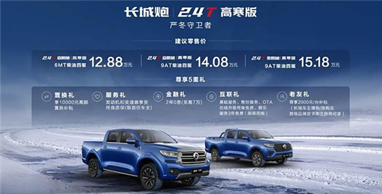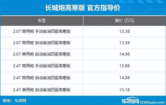 日前,车质网从官方获悉,长城炮高寒版车型正式上市,新车推出6款车型,售价12.38-15.18万元。此次上市是针对北方高寒地区用户和复杂的用车场景而推出的,满足用户在高寒环境下的用车需求。